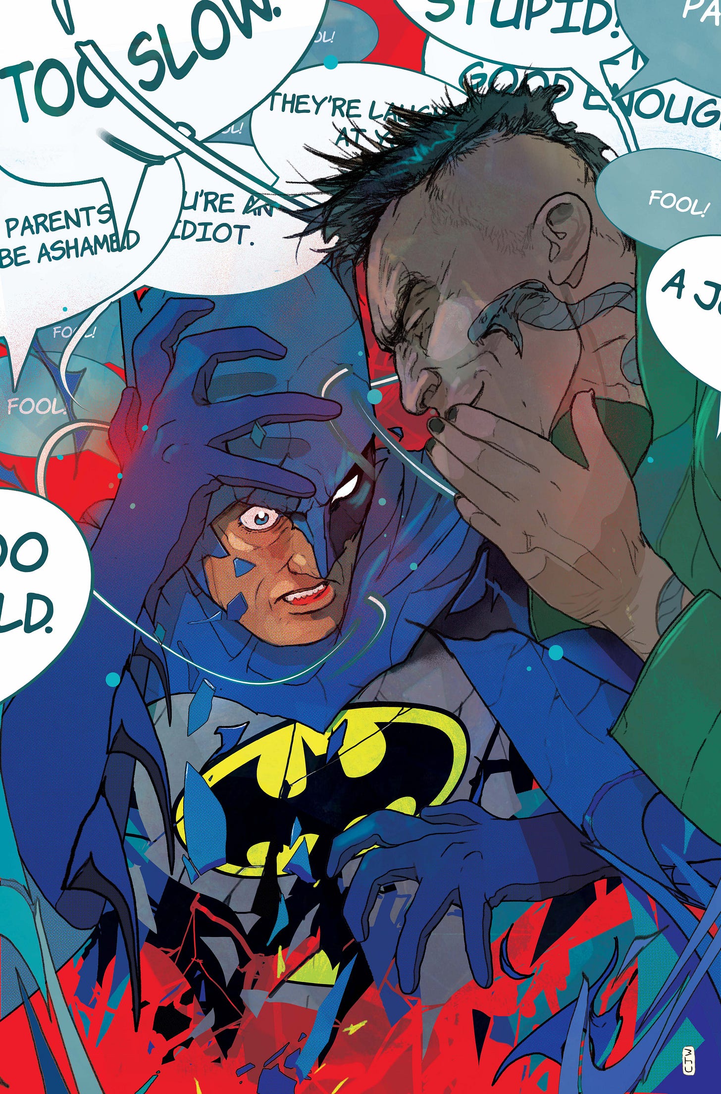 In the script i sold it to Patric like this… ‘‘ This is a letter for you. You're Batman in this story and this is me telling how talented you are and not to worry.” I told him he would blow people away and he has. Just look at this sneak peak of some of his fully painted Batman art ( coloured by Luis NCT ) featuring Doubt , a brand new batman villain created by us.